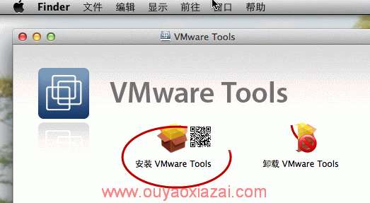 2、启动虚拟Mac OS X,启动完成后,Mac OS桌面会出现VMware Tools的操作项,选择"安装VMware Tools",双击即可.