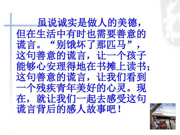 守候书摊的是一位坐在轮椅上的残疾青年。偷看书的时候,羞愧不已的我根本不敢回头去看他那张瘦削的脸。当我第二天上学经过书摊,看见坐在轮椅上的他依然宽厚地向我一笑时,我忐忑不安的心才得以平静。如果没有他每日早上这宽厚的一笑,我就不会继续看他的书,也就不会有那刻骨铭心的两个耳光。