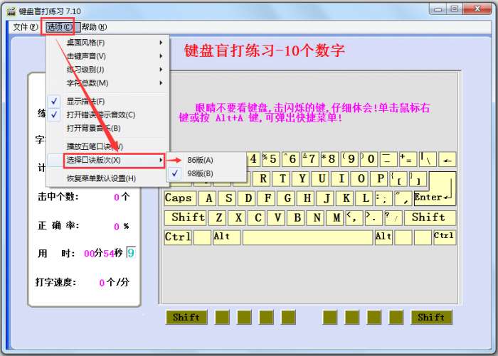 这一款集键盘按键练习、全部字符练习、手指位置显示和字符大小写区别练习为一体的键盘盲打练习软件将成为人们的得力助手。