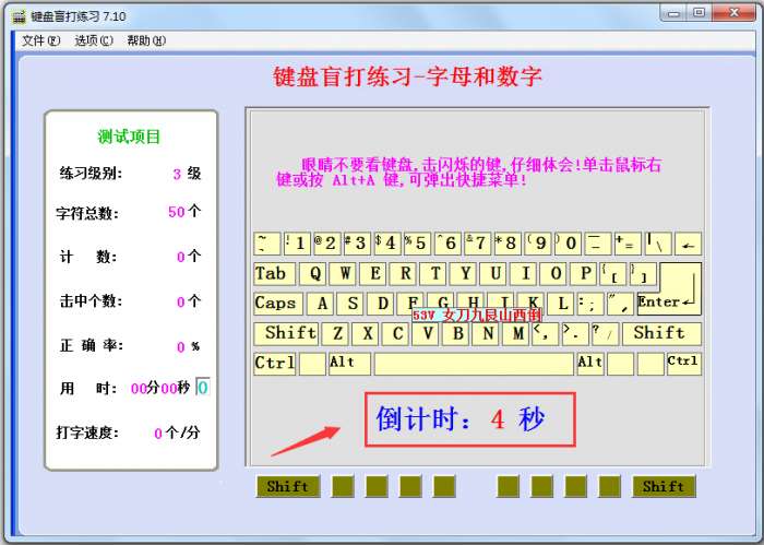 1、开始——键盘盲打开始(有5秒准备时间)。