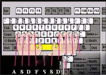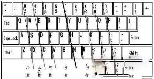也就是说,左手的食指的移动规范是4 R F V 一条线,右手食指的移动规范是7 U J M 一条线。其中挨着左手食指的5 T G B 由左手食指去打,同理,靠着右手食指的6 Y H N 四个键由右手食指去打。