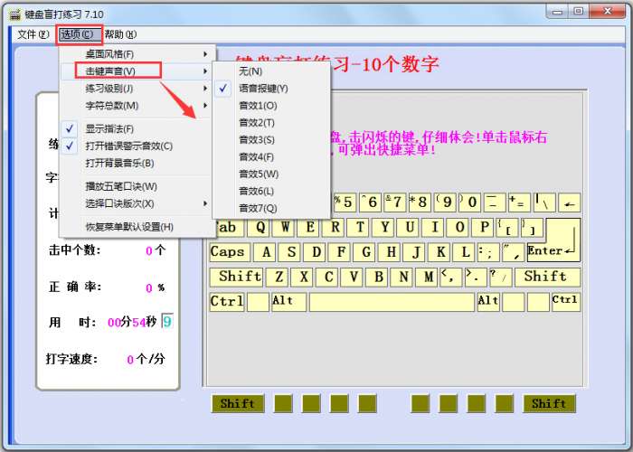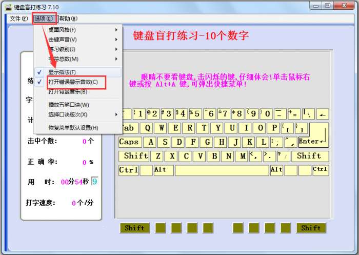 6、打开错误警示音效——选择击键错误时是否发出警示声音。