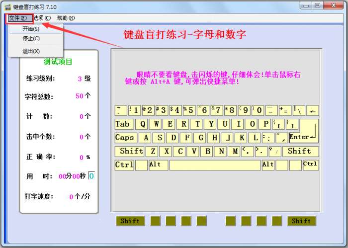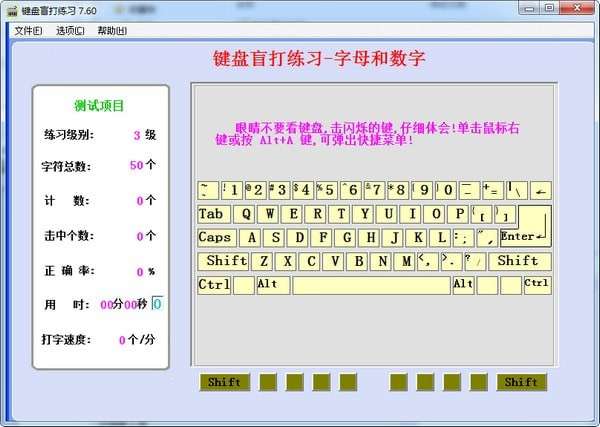 键盘盲打练习集键盘按键练习、全部字符练习、手指位置显示和字符大小写区别练习为一体,特别适合儿童和电脑初学者打字手法训练,勤加练习,必定祝您成为打字高手!