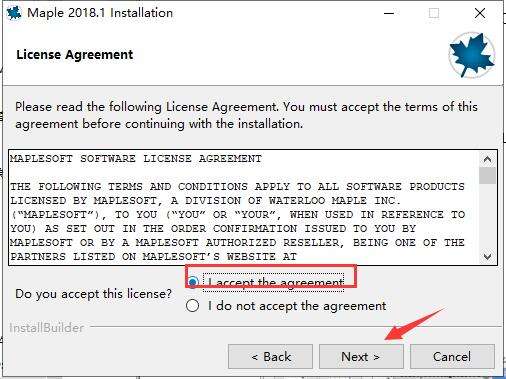 2、查看软件安装许可协议,选择“I accept the agreement”同意许可协议条款,点击【Next>】进行下一步