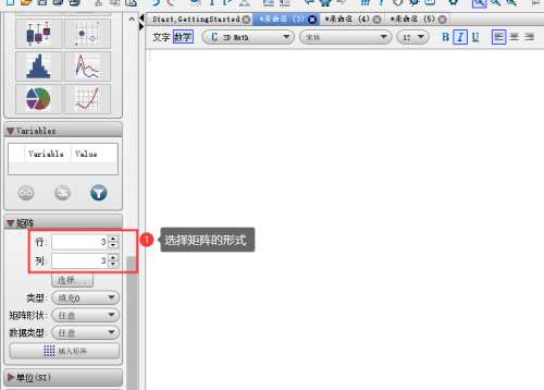 点击回车,创建矩阵,在后面的标号为对应的矩阵,现在将矩阵赋予变量A.使用:=,快捷键Ctrl + L添加(1)