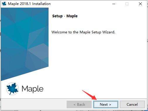 1、解压缩在PC下载网下载的软件包,双击“Maple2018.0WindowsX86Installer.exe”程序进入欢迎安装界面,点击【Next>】继续