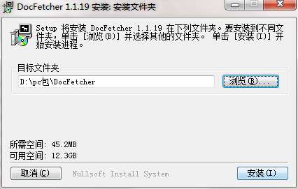 3.双击打开,进入docfetcher软件界面,选择安装位置,点击下一步