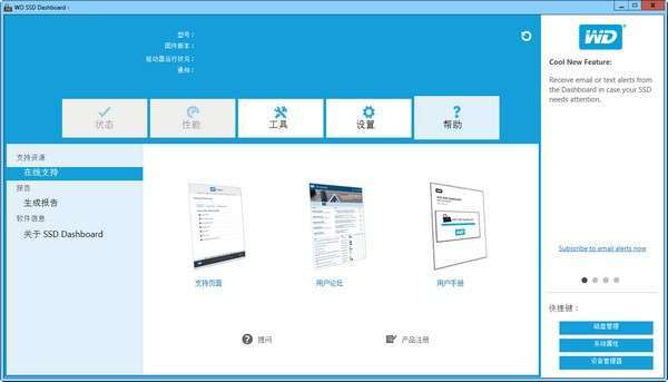 WD SSD Dashboard由西部数据官网专为新出ssd提供了西部数据固态硬盘管理工具软件ssd型号容量和固件版本的检测功能,以及固件升级、系统备份复制等功能,帮助用户wd ssd提高优化性能。