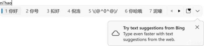 Bing 搜索建议从 IME 候选窗口扩展。