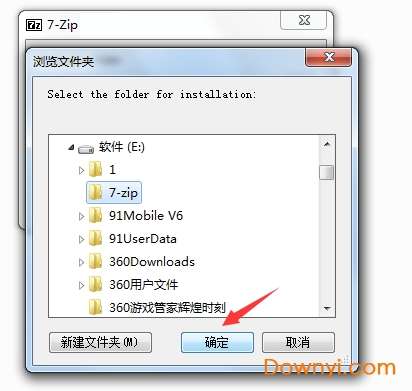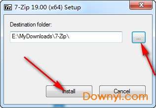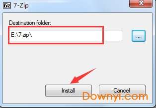 3、双击7z1805.exe运行,然后开始准备安装。”destination folder"意思是安装路径,我们可以看到程序默认是安装在c盘的。可以单击“install"【安装】,这样的话程序自动就会安装了。不过小编建议大家不要安装在c盘,这样可能会占用系统盘资源,影响电脑运行速度和软件的使用。点击路径右侧三个点的按钮浏览可自定义安装目录,选择好路径后点击”确定“就可以了。