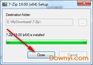 5、点击“install"开始安装,软件安装速度非常快,等待几秒就完成了。安装完成后点击”close“【关闭】,关闭安装窗口即可。这时我们就完成了7-zip软件的安装了,是不是很简单呢?