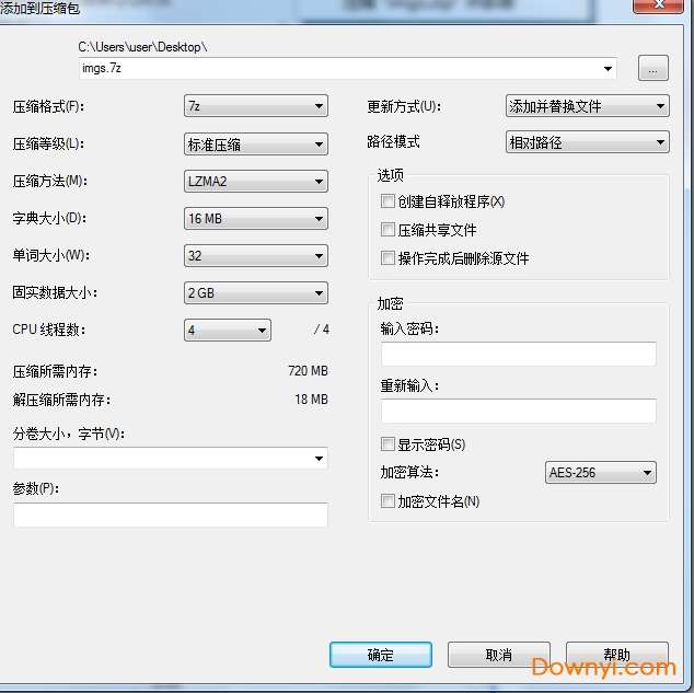 加密:强大的 aes-256 加密,在解压时必须填写密码才可成功解压里面的文件,这个对于一些比较重要的资料文件来说是非常重要的。