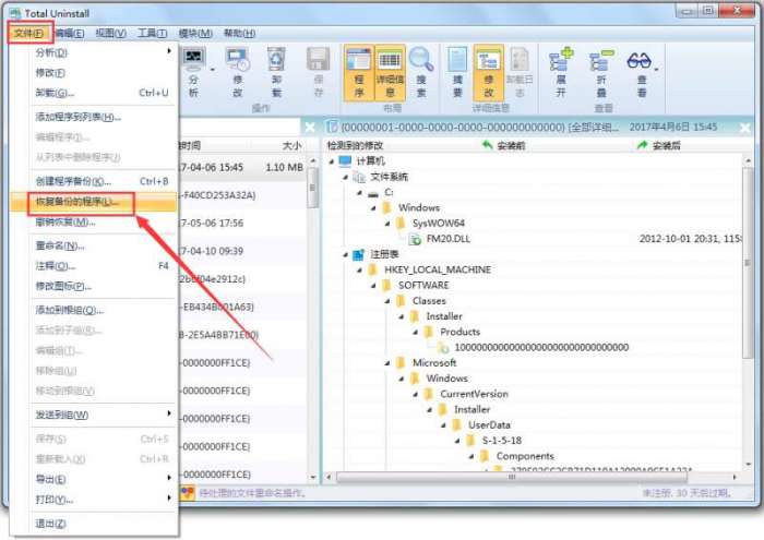 默认情况下,Total Uninstall卸载软件时会创建软件备份包。备份包里有软件安装文件,注册表信息。