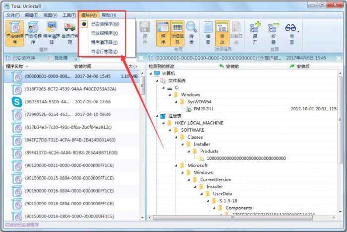 Total Uninstall能记录软件的安装信息,将软件模块化。