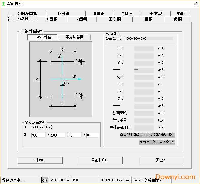 目前可以计算的截面:H型钢、C型钢、Z型钢、工字钢、槽钢、角钢、圆钢和圆管、矩形管。