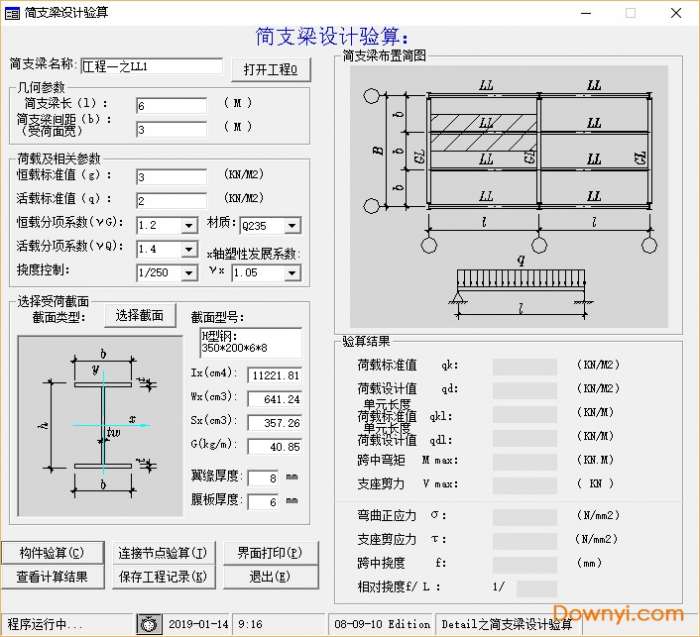 这是关于结构细部的设计程序,它包含:截面特性、简支梁、拼接节点 、锚栓、单跨梁、组合梁、钢管混凝土柱等内容。主要针对钢结构设计人员设计计算一些结构细部构件、节点等,同时为计算提供工程记录、打印计算书等内容。对提高设计速度、结构快速设计有很大的帮助作用。 另外,对于工程的概预算也有很大的参考和帮助作用。 新增计算书预览、页面布置等等。