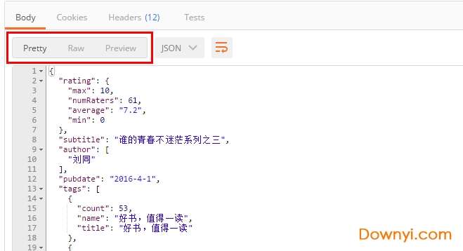 一般在用其他工具来测试的时候,response的内容通常都是纯文字的raw,但如果是json,就是塞成一整行的json。这会造成阅读的障碍,而postman可以针对response内容的格式自动美化。json、xml或是html都会整理成我们可以阅读的格式