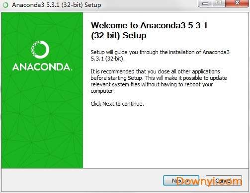 2、点击下载的安装包anaconda3-5.3.1-windows-x86.exe,安装exe文件