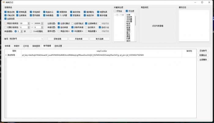基本上继承了鲸猫的京东试用功能,额外添加了自动入会(部分商品需要加入店铺会员,需要手机号、生日、姓名、性别等支持,好像可以随意填个假的。部分黑号可能无法加入会员)
