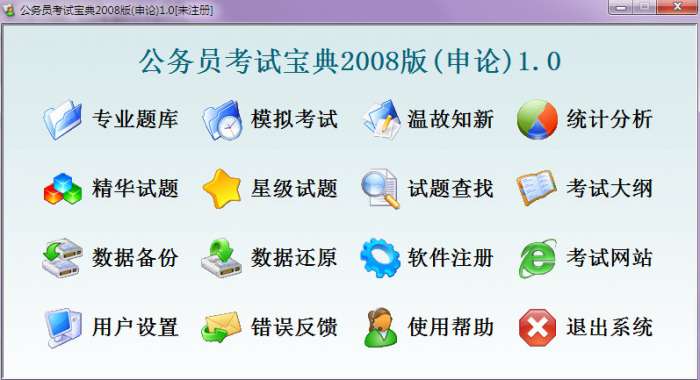 公务员考试宝典2008版是一款为公考人员提供服务的电脑应用软件,用户可以在软件上进行题库联系,考试模拟,大纲学习等多种学习功能,让你不再没地方复习公考,赶快来体验吧!!!