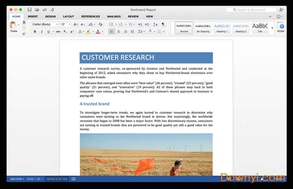 新设计的针对os x系统的word、excel和 powerpoint与office运行在不同平台上的各个版本保持一致,也就说如果你mac上运行的office里一个功能位于插入标签里,那么安卓平板电脑上这个功能也将位于插入标签里。此外,还有一个新的任务窗格界面,微软希望放在合适位置、调整大小、旋转图形等操作变得更加容易,此外还有新的主题和样式帮助你整理文档。此外还加入了全屏预览和例如滚动反弹等“mac功能可见性”特征。微软表示,“很明显这是office——但它精心设计巧妙的利用了mac的独特特征。”