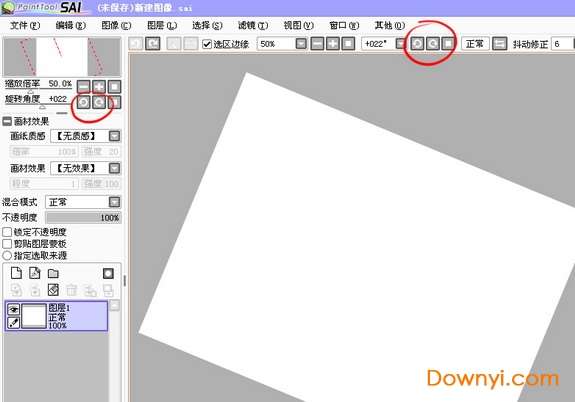 sai提供了旋转画布功能,通过使用快捷键,可以以任意角度旋转画布,在一边作画时可随时旋转画布。
