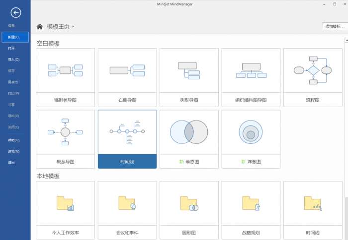 2、在打开的窗口中点击【新建】,选择mindmanager的模板,选择完成后点击双击模板就可以了。