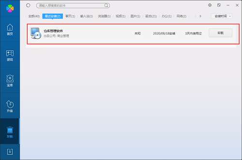 方法二:安装并打开360软件管家,在卸载选项的列表中找到万能仓库管理软件,点击卸载即可