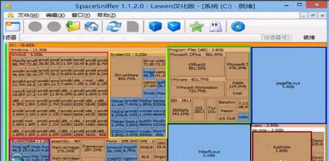 一、SpaceSniffer能快速分析你硬盘上的空间分布情况,并迅速建立简单直观的图表通过可视化图形布局,并可以直观的看到硬盘上大的文件或文件夹。