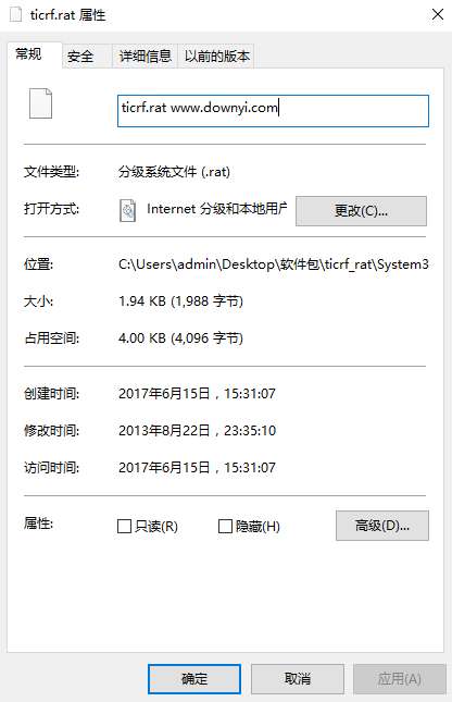 ticrf.rat 32位/64位 ticrf.rat文件是windows系统的内容审查程序,如果它没有正常运行或者出现报错,那么你的电脑将无法正常使用,可能有多种原因导致,本站提供免费下载,需要的朋友快来当易网下载使用吧,更多精彩内容尽在当易网! ticrf.rat文件介绍:ticrf.rat是电脑中一个必不可