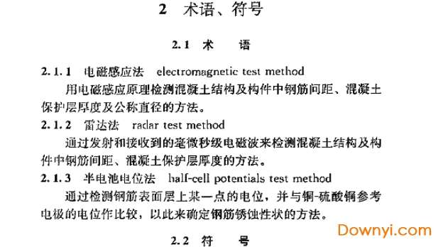 1.0.2 本规程适用于混凝土结构及构件中钢筋的间距、公称直径、锈蚀性状及混凝土保护层厚度的现场检测。