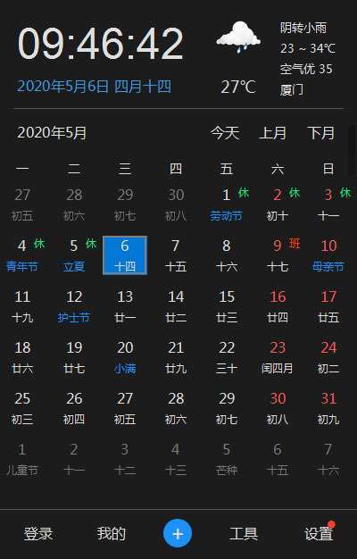 采用Win10原生风格日历主界面,使用无任何违和感。