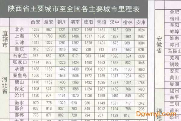 陕西省公路里程表全图 908.00 MB
