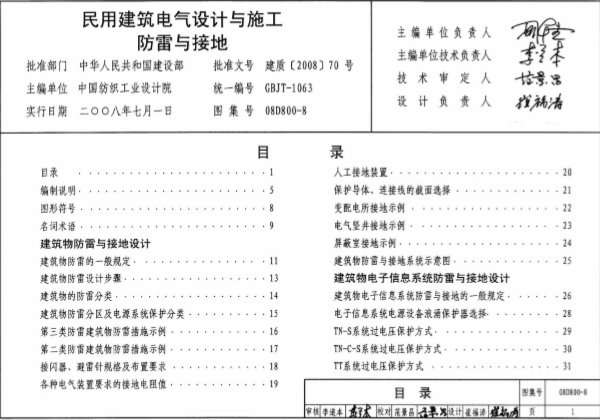 08D800-8民用建筑电气设计与施工防雷与接地图集,简称为08d8008图集。该图集是一份非常具有实用性且应用范围比较广泛的图集。在多本强电现行国家建筑标准设计图集的基础上,根据《民用建筑电气设计规范》JGJ16-2008及新技术、新产品,进行全面的整合、提炼、补充,以民用建筑工程为主,编制常用的、量大面广的、施工方便的图集,内容全面、精炼、便于查找。