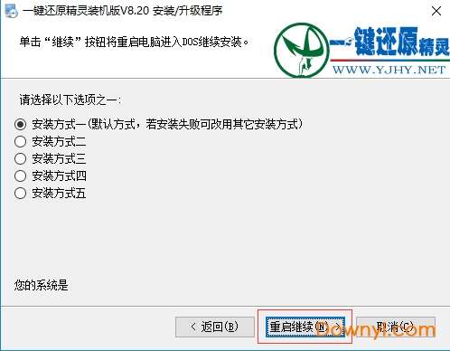 三、点击【重启继续】,等待即可。
