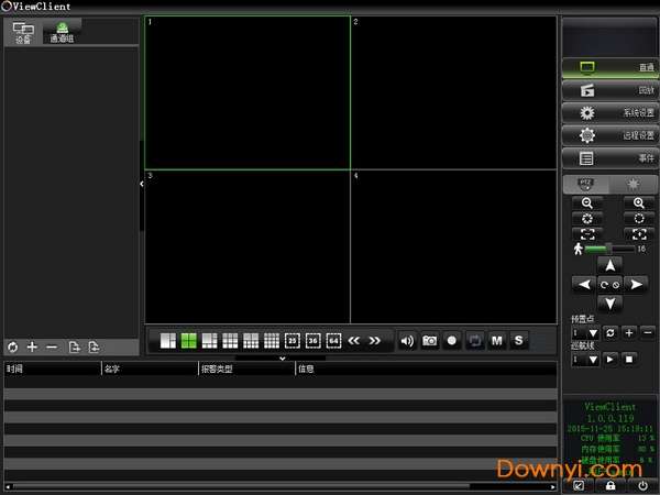 viewclient可以实现多窗口监控,您可以设置四窗口、或单独监控一个独立目标,对dvr、dvs和ip摄象机等监控设备进行实时连接,有效的对发出的异常信号进行自动报警处理,支持录像监控、视频回放、远程管理等功能,在防盗、防灾、报警、等监控方面都有巨大的优势。