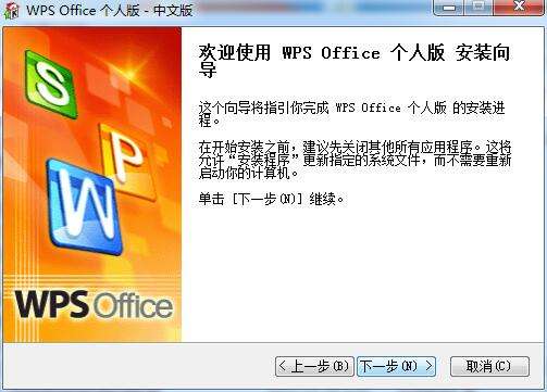 3、进入wps2007安装向导,按照提示进行安装,点击下一步