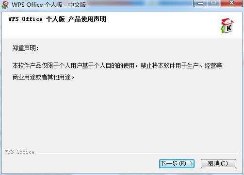 2、会出现wps2007产品使用声明的界面,阅读完之后点击下一步