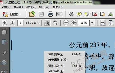 2、定位到你想要提取文字的页面,选中,点击右键可以看到,当前页面是一张图片,如下图所示: