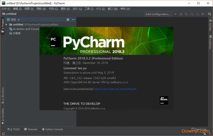 如果打开后显示乱码,请先删除resources_cn.jar,然后打开PyCharm 2018,在菜单上依次选择