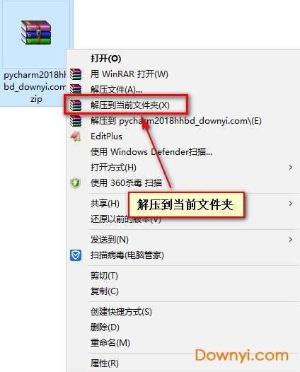 1、在pk游戏网下载“pycharm2018汉化补丁”,并且解压压缩包“pycharm2018hhbd_downyi.com.zip”到当前文件夹: