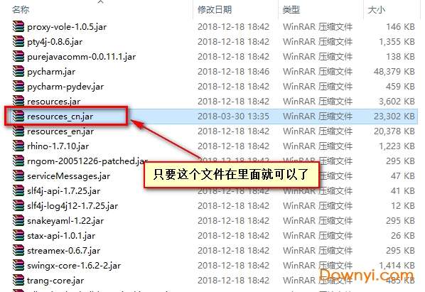 2、解压完毕之后进入“pycharm汉化包”文件夹,将文件“resources_cn.jar”复制