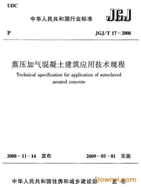 下载jgjt17-2008蒸压加气混凝土建筑应用技术规程 最新版