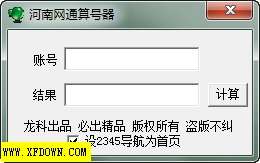 网通算号器 ,河南网通发给用户的账号都是加密的。通过计算河南网通提供的网上账号来计算真实账号。这样就可以直接使用系统提供的宽带连接,而不需要使用河南网通强制的拨号程序,节省了20 m以上的内存,不再有广告。