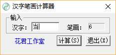 汉字笔画计算器 v1.01 绿色版汉字笔画计算器可以很方便快速的计算出给出汉字的笔画数,免得需要你花时间进行计算笔画,可以用它来测试和他人的生辰八字,如果有需要的话就可以前来本站下载体验哦! 名字笔画数计算器介绍汉字笔画计算器,简单小巧的一款软件,输入汉字后,单击计算按钮,可以得到