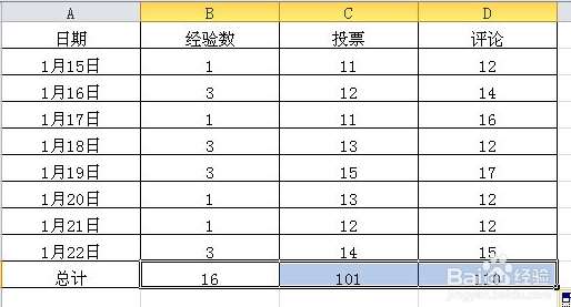 3、再查看总计求和的单元格,这时候显示的是所有全选数字的一个求和数值了。