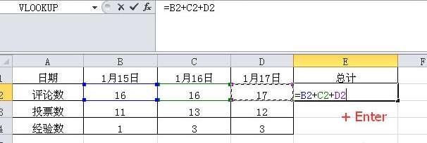 2、然后用鼠标全选需要求和的所有数字,然后再点击【Enter键】。