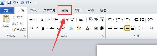 3、添加完成标题后,点击Word2010菜单栏中的【引用】。