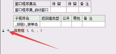 5、之后使用鼠标左键双击“按钮”区域,在编辑栏的最下方输入“信息框”语句。