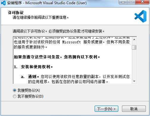 2、查看软件许可协议,点击我接受协议,点击下一步